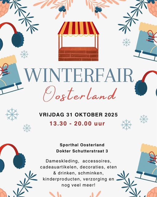 Vrijdag 31 oktober is de “Winterfair Oosterland”. De Fair begint om 13.30 tot 20.00 uur in de Sporthal, Dokter Schutterstraat 3 in Oosterland.